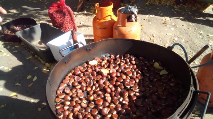 Jedna tura peče se desetak minuta u kazanu, a pre pečenja kesten i zarežu, da bi se lakše gulio.