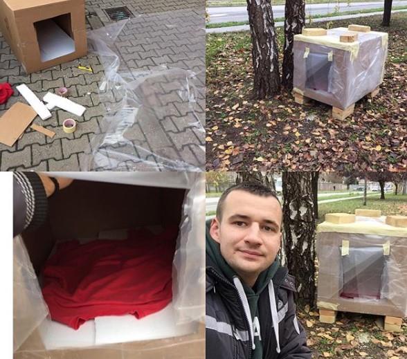 Ignjat je rešio da kucama i macama koje žive na ulici olakša ostatak zime koji bi mogao da bude hladan i sa snegom. Zato je od kutija napravio kućice za životinje koje žive na novosadskim ulicama, da tu nađu mesto na kojem će se malo zgrejati i prespavati.