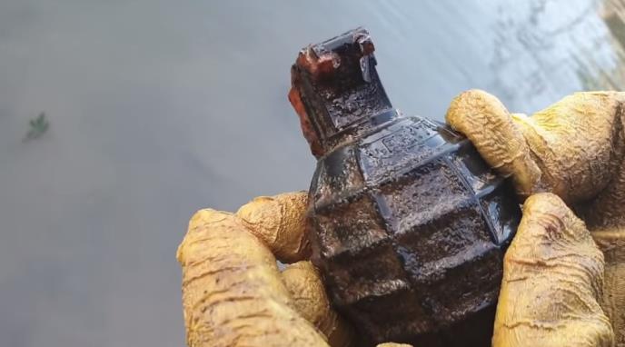 Na snimku sa Jutjuba, koji je od objavljivanja 30. jula ove godine do danas pregledan više oko 450.000 puta vidi se da je ova mala reka na svom dnu krila stari pištolj, deo stare puške ili automata, šaržer, prigušivač, dva redenika sa mecima i još koješta.