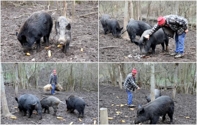 RANKO IZ GLOŽANA DRUGUJE SA DIVLJIM SVINJAMA: Hrani ih kukuruzom, hlebom i bundevama, ali samo jednu sme da pomazi FOTO