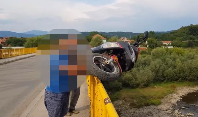 Jedan Leskovčanin bacio je, kako se vidi na snimku koji je osvanuo na Jutjubu, svoj motor u reku, jer mu je policija pisala kaznu zbog nenošenja kacige.