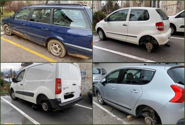 ČAČAK - U čačanskom naselju Kaluđerice vozači su na parkingu ispred svojih zgrada naišli na automobile koji su bili bez točkova. Za sada nepoznati počinioci na nekoliko automobila skinuli su točkove, ali na pojedinima izbušili i gume.