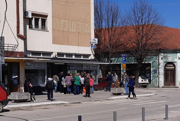 KURŠUMLIJA - Građani Kuršumlije uopšte se ne pridržavaju odluka i mera koje je donela Vlada Republike Srbije, te je jutros na primer zabeležena veća gužva ispred Pošte u ovoj sredini. Na slici koju nam je poslao građanin se lepo vidi da ne poštuju ni propisanu razdaljinu.
