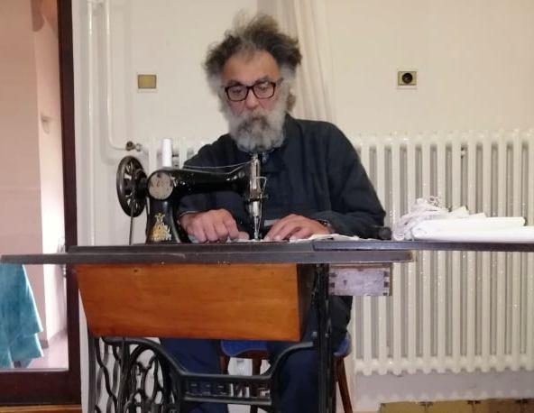 Na majčinoj staroj “singerici”, Čubrilo šije zaštitne maske koje deli komšijama, prijateljima i rodbini.