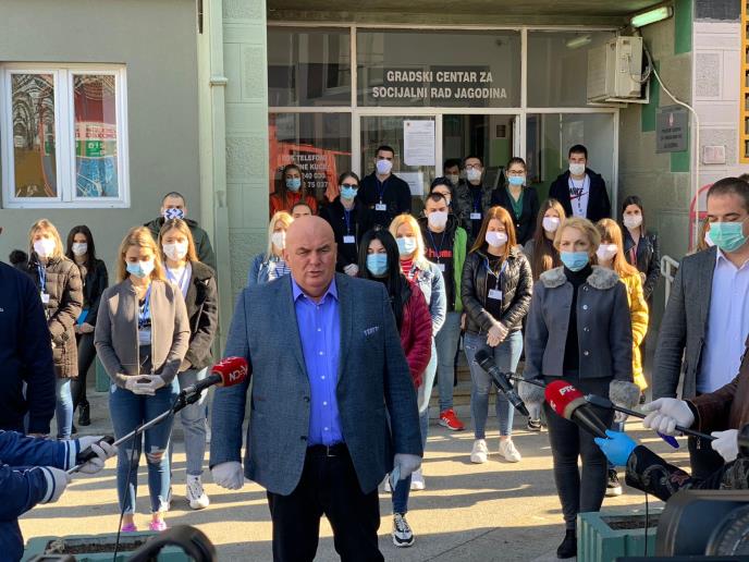 Stanovnici Jagodine se striktno pridržavaju policijskog časa, a i Jagodina je prva u Srbiji osnovala kol centar sa pet telefonskih brojeva i počela je s podelom pomoći starijima od 65 godina i slabijeg materijalnig stanja, naveo je je Marković na konferenciji za medije koja je organizovana na otvorenom prostoru ispred Grdskog Centra za socijalni rad.