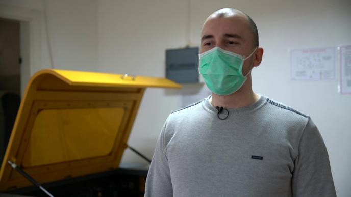 - Prva faza je gde mi mejkeri proizvodimo vizire dok ne počne serijska proizvodnja vizira, koja će proizvoditi veliki broj vizira dnevno, negde oko tri do 4.000 komada na dan. Mi sad trenutno oko 200 vizira proizvodimo na dan.