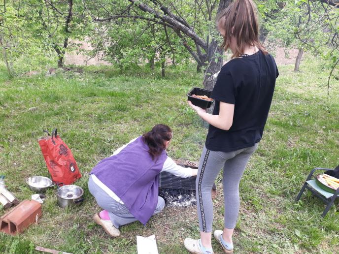 "Prvi put ja obavljam ovaj posao. Priznajem, imamo samo rešetku, pa smo napravili ognjište, a od komšije sam dobila instrukcije kada da stavim ćumur", kazala nam je Ivana, koja sa svojom porodicom, kako kaže prvi put prvomajski uranak organizuje u dvorištu.