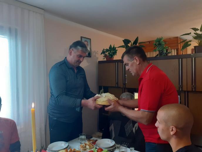 "Kako to i dolikuje, prelomili smo slavski kolač, po srpski se tri puta izljubili i domaćom ljutom za zdrvlje nazdravili. Da Bog i Sveti Đorđe daju da smo živi i zdravi i da dogodine isto u zdravlju i veselju slavimo", kaže Vladimir.