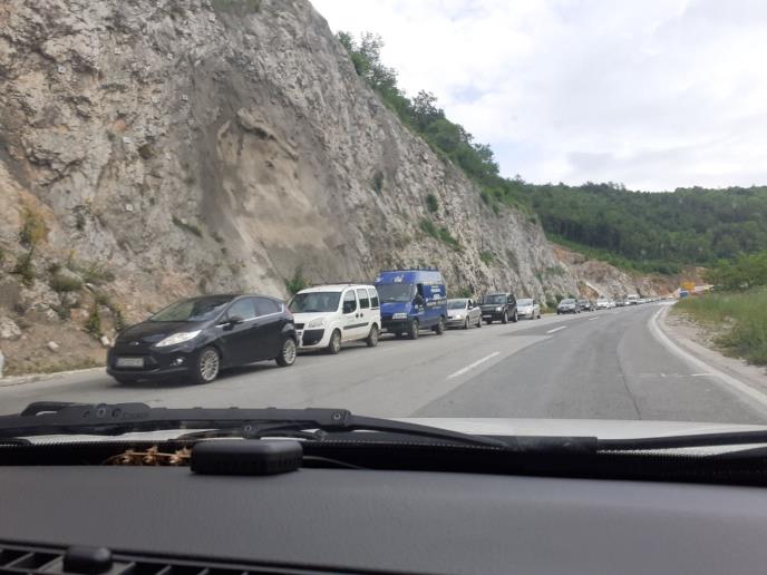 Razlog zastoja je semafor koji je postavljen ispred gornjeg tunela kod kamenoloma Surduk.