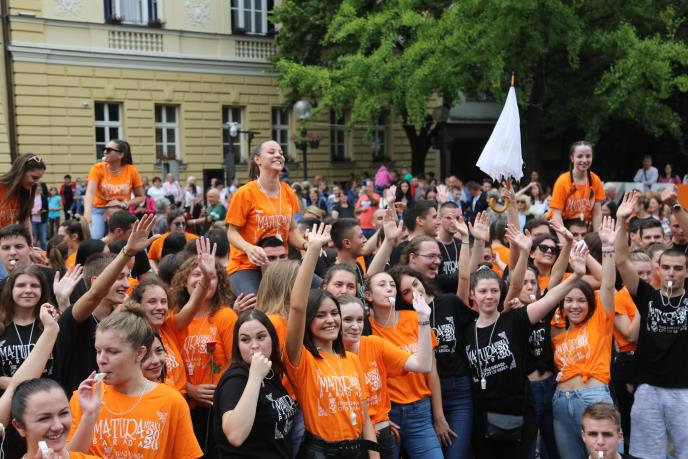 - Baš je baksuz rešio da nas potera. Sve se, srećom, lepo završilo. Ma, igrali bi i da su “sekire padale”- priznali su oni. U sinhronizovanom plesu maturantima četiri kikindske srednje škole pridružili su im se njihovi profesori, ali apsolventi Visoke škole strukovnih studija za obrazovanje vaspitača. Učesnike „Maturantske parade“ pozdravila je Bosiljka Srdić, zamenica gradonačelnika Kikinde. Ona je maturantima poželela da izrastu u dobre, poštene i časne ljude: