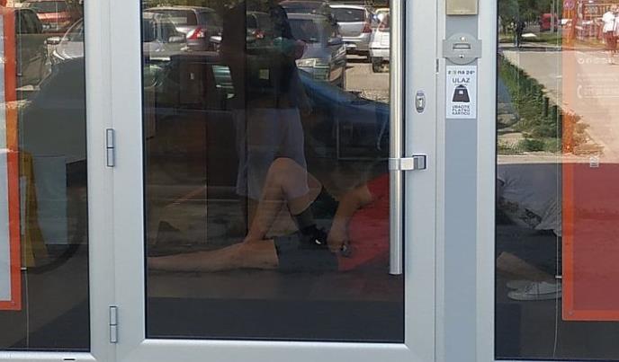 Muškarac srednjih godina, danas oko 11:30 časova, legao je na ulazu u Banku Inteza na Novom naselju, jer nisu hteli da mu daju masku, bez koje ga nisu puštali u ekspozituru.