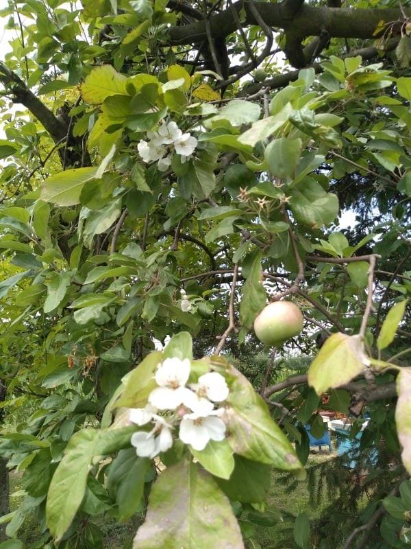 Čuo sam i viđao da voće ponovi cvetanje u jesen, kad je toplije vreme, dešavalo se i da se pojavi plod pred zimu ali da u sred leta jabuka cveta i rodi to do sada nisam video