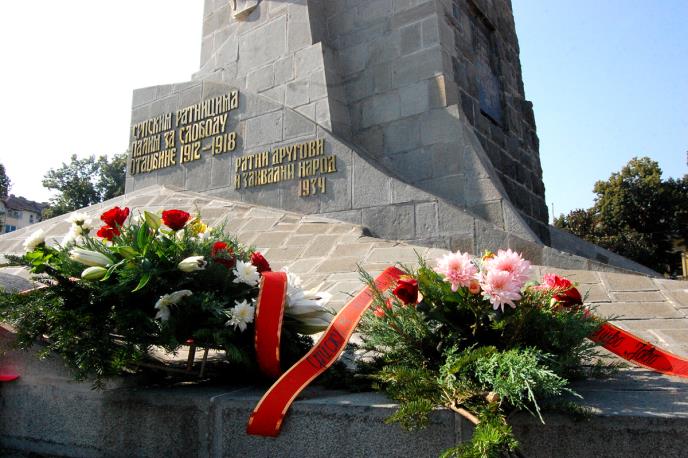 KRALJEVO - Polaganjem venaca na Spomenik srpskim ratnicima palim za slobodu otadžbine od 1912. do 1918. godine na Trgu srpskih ratnika u Kraljevu, obeležen je Dan proboja Solunskog fronta - 15. septembar.