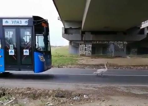 Ispred vozila gradskog prevoza gegao se ovaj delija ne hajući za pun autobus iza sebe, a vozač je pobrao simpatije na Instagramu zbog strpljenja prema "ptičici".