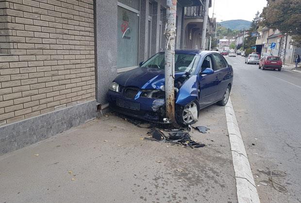 Naime, vozač koji je bio samo u vozilu, najverovatnije pod uticajem alkohola, izgubio je kontrolu nad vozilom, udario u automobil koji se kretao u suprotnom smeru i od siline udara se vozilom zabio u banderu.