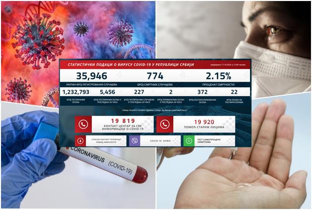 SRBIJA - U poslednjih 24 sata u Srbiji je na korona virus testirano 5.456 osoba, njih 227 bilo je pozitivno dok su nažalost umrla dva pacijenta.