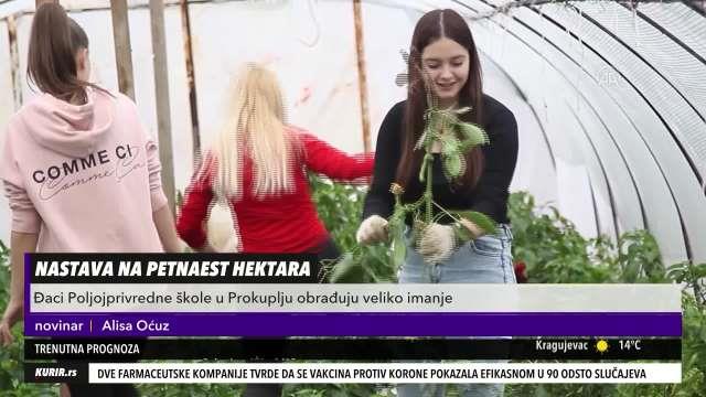 Đaci Poljoprivedne škole iz Prokuplja na jugu Srbije veći deo nastave provode na otvorenom, i to ne zbog epidemioloških mera, već zato što na praksi zajedno sa nastavnicima obrađuju poljoprivredno imanje od petnaest hektara.