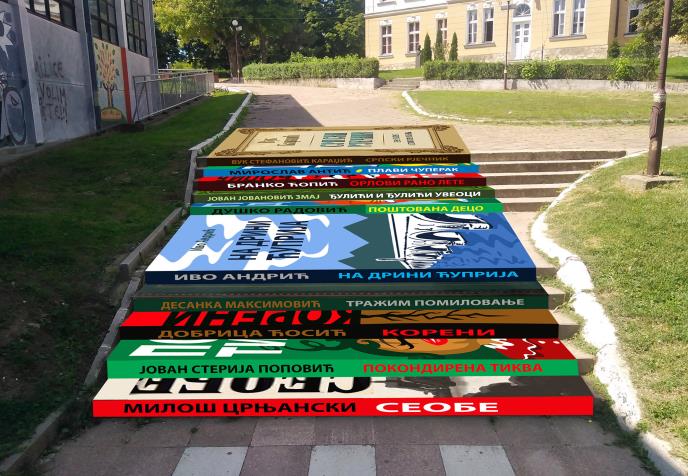 Učenici Osnovne škole "Anta Bogićević", najstarije u gradu, kao i svi koji od šetališta u Cvijićevoj krenu ka njoj i obližnjoj staroj crkvi, uskoro će prolaziti oslikanim stepeništem sa nazivima knjiga naših najpoznatijih književnika.
