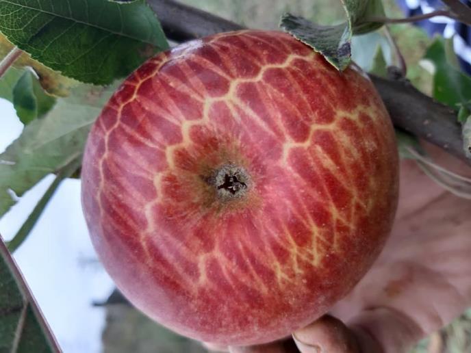 - Imam mlad zasad jabuke, sada je u četvrtoj godini, gusta sadnja. Na dva stabla bio je po jedan plod, a kad sam ubrao jabuku, baš sam se iznenadio. Jabuka je porasla i sazrela u mrežici koja je postavljena da bi zaštitila stablo od glodara, tako da je na plodu ostala šara od mreže - kaže Dejan Marković iz sela Bor.