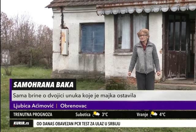 U selu Ljubinić kod Obrenovca, bez vode i osnovnih uslova za život, Ljubica Aćimović (69) podiže svoje unuke desetogodišnjeg Davida i 15-godišnjeg Dragana koje je majka napustila, a otac ostavio bez starateljstva. Kada ih je ostavila majka, pošto se preudala, ostali su sami sa ocem alkoholičarem i bakom.