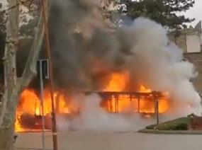 NIŠ - Autobus na stajalištu u Niškoj Banji potpuno je izgoreo. Očevici kažu da se čula jaka eksplozija i da je buknuo požar.