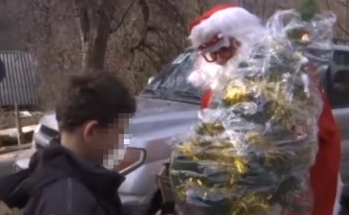 Deda Mraz mu je poklone spremio i nenadano se sa paketićima, jelkom i televizorom na kaljavom prilazu kući Milojevića pojavio.
