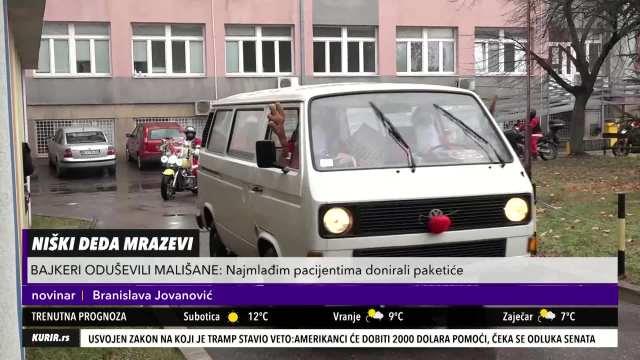 Više od dvadeset bajkera iz Niša maskiranih u Deda Mrazeve, prodefilovalo je niškim ulicama na putu ka Kliničkom centru, kako bi najmlađim pacijentima hemato-onkološkog odeljenja, donirali novogodišnje paketiće i beskontaktni aparat za dezinfekciju ruku.
