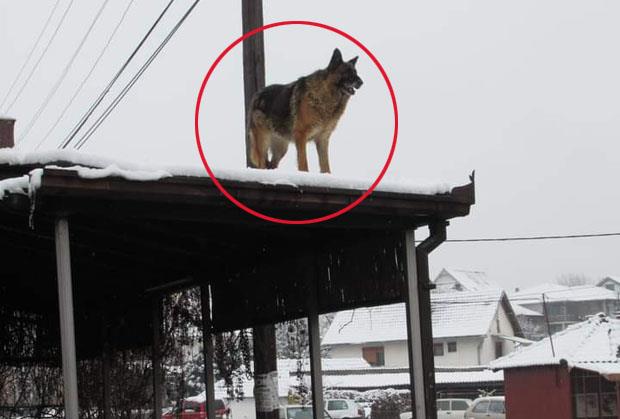 Na društvenim mrežama kruži fotografija nemačkog ovčara koji nepomično stoji na zavejanoj nadstrešnici u selu Darosava kod Aranđelovca.