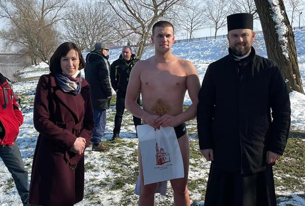 KRUŠEVAC - Kruševljanin Luka Momirović (22) pobednik je u plivanju za Časni Bogojavljenski krst, koje je održano danas u Trsteniku na Zapadnoj Moravi.
