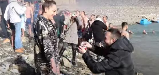 Više desetina učesnika plivalo je na temperaturi malo ispod nule, a jučerašnji događaj obeležila je i jedna veridba – Milicu Đurić, dugogodišnju učesnicu ovog verskog događaja, zaprosio je njen izabranik