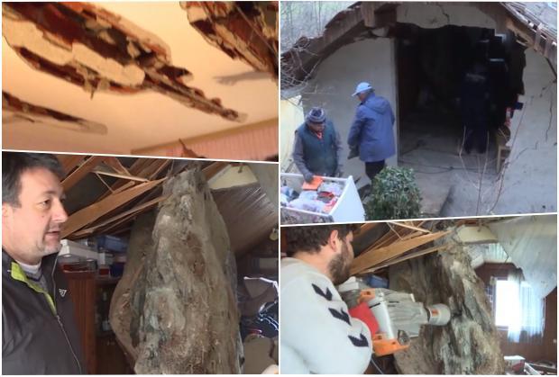 Dok se kotrljala ogromna stena je obarala drveće, a potom je porušila zid i krov kuće i zaglavila se u potkrovlju.