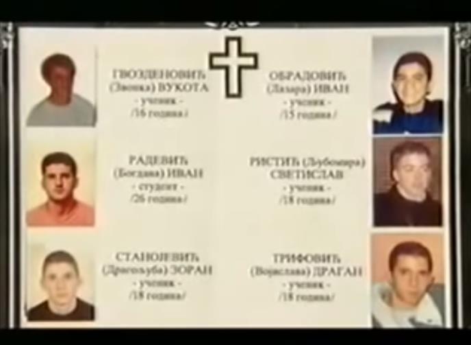 Ubijeni su Ivan Obradović (15), Zoran Stanojević (18), Vukota Gvozdenović (16), Svetislav Ristić (18), Ivan Radević i Dragan Trifović (18). Vlado Lončarević (18) je teško ranjen, dok su lakše ranjeni Mirsad Šabović (34) i Nikola Rajović (18).