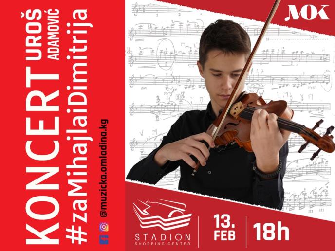 Muzička omladina-Kragujevac i šoping centar Stadion udruženim snagama organizuju još jedan humanitani koncert mladog violiniste Uroša Adamovića povodom Dana zaljubljenih, a u cilju prikupljanja novčanih sredstava za lečenje Mihajla i Dimitrija.