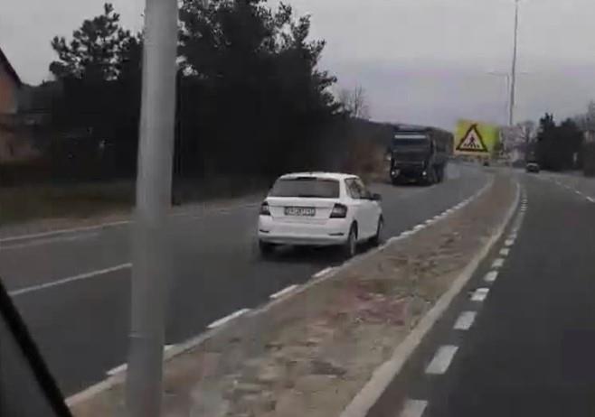 Sve se desilo u po bela dana. Vozači su u čudu ablendovali, ali "majstor" se nije zaustavljao sve do kružnog toga.ž