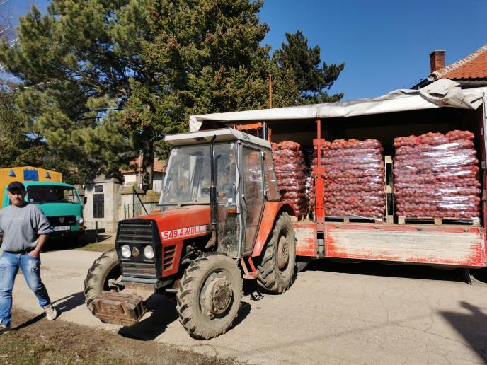 Gornji Milanovac - Tone krompira već mesecima stoje na lageru u selu Gornji Branetići kod Gornjeg Milanovca. Nezadovoljni poljoprivrednici pre samo desetak dana bili su ubeđeni da će veći deo svog roda morati da bace, jer potražnje nije bilo, međutim, proizvođačima je stigao spas u zadnji čas. Ministarstvo poljoprivrede obezbedilo je kupca, pa su u ovom selu podno Rudnika natovareni prvi kamioni krompira koji će pronađi mesto na rafovima marketa u Srbiji.