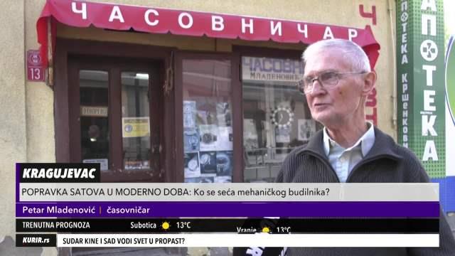 Kragujevac je pre šest decenija imao 15 časovničarskih radnji. Od oko 50 majstora, kalfi i učenika iz tog perioda svelo se na njih šestoricu, mahom penzionera koji čuvaju svoj zanat! Jedan od retkih koji je ostao u poslu i danas je Petar Mladenović, najstariji aktivni časovničar u gradu. Za razliku od vremena kada je on bio učenik, sada niko od mladih neće da priviri radnji i nauči majstorstvu.