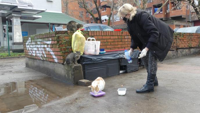 Penzionerka Marija Vukašinović (65) iz Kikinde već tri godine brine o napuštenim mačkama. Kad se iz Novog Sada vratila u Kikindu, oči joj je odmah zaparao otužan prizor dela stambenog bloka Galadska u centru grada. Na mestu gde se nekada nalazio bačeni nameštaj, granje i lišće, Marija je mačkama napravila male kućice u koje, kako kaže, mogu da se sklone od kiše i snega. Ovaj prostor redovno čisti, a mačke dva puta dnevno hrani: