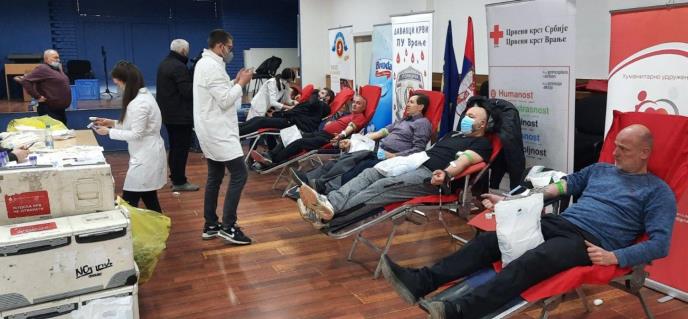 Udruženje dobrovoljnih davalaca krvi PU Vranje, uz poštovanje naloženih epidemioloških mera 24.i 25. februara ove godine organizovalo je akciju dobrovoljnog davanja krvi.