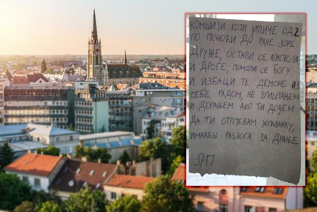 Poruka je navodno osvanula na ulaznim vratima jedne zgrade u Novom Sadu, a autor očigledno već duže vreme ima problem sa ponašanjem pojedinih komšija, pa im je poslao upozorenje.