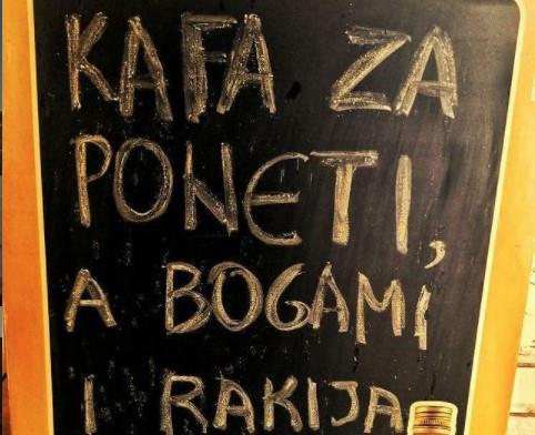 - Kafa za poneti, a bogami i rakija "šalteruša", piše na rekalmnom panou jednog novosadskog kafića koji kao ni ostali u Srbiji zasad ne mogu da ugoste sedeće muštrerije.