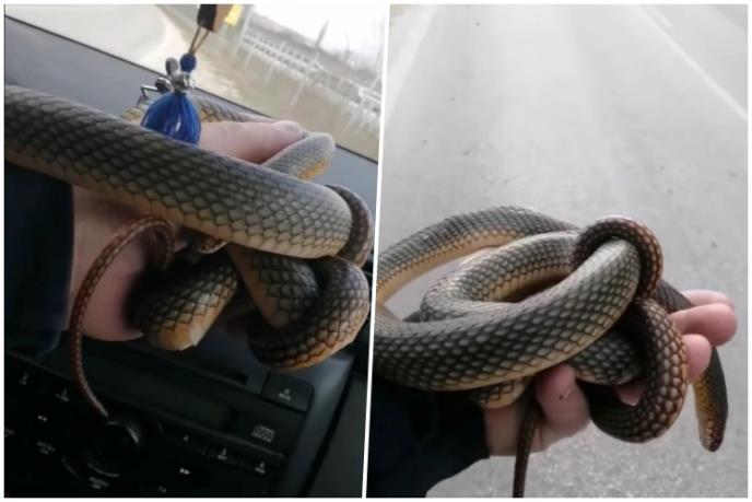 - Stepski smuk, samo što sam ga našao na putu Han-Vranje, hteo je auto da ga pregazi, hladno mu je ne može da funkcioniše, pokušaću da ga vratim u život da ne ugine, da probam da vidim da li može da se ugreje malo, jer je hladno napolju, ja mislim da ćemo da uspemo da ga vratimo u život - rekao je Vladica.
