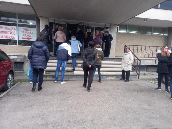 U petak oko 18 sati i 30 minuta, ispred centralnog punkta za vakcinaciju u Novoj opštini u Subotici, još je 50-ak građana čekalo da primi Fajzerovu vakcinu, a među nima je bio i veći broj neprijavljenih na portal eUprave.