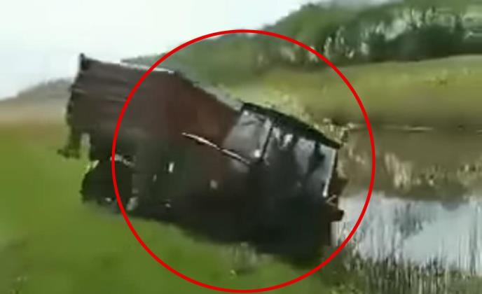 Međutim, vozač je očigledno pogrešno procenio snagu svog malog traktora, a potom je za svega nekoliko sekundi naočigled okupljenih meštana završio u obližnjem janalu sa vodom.