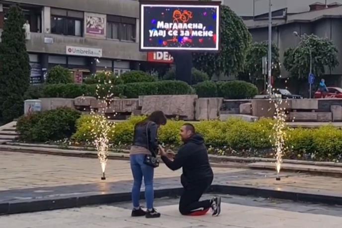 Mladi par je u četvrtak šetao Gradskim trgom, a Siniša je zaustavio svoju izabranicu dok su prolazili ispod led bilborda na kome je pisalo: