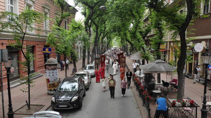 Svečano i dostojanstveno, Litija se kretala Zmaj Jovinom ulicom, Dimitrije Tucovića, Korzo ulicom, do Peščanog sata, a povratak sveštenika, vernika i građana do Hrama, organizovan je ulicom Đure Đakovića.