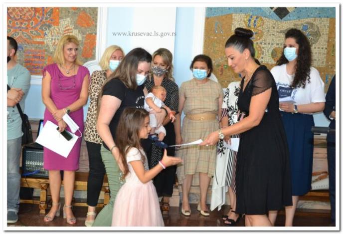 Poklon čestitke su podelili zamenik gradonačelnika Aleksandar Jovanović, predsednik Komisije za sprovođenje mera i aktivnosti populacione politike Grada Kruševca Ivan Mijailović i narodni poslanici dr Dragana Barišić, Nevena Đurić i Zoran Tomić.