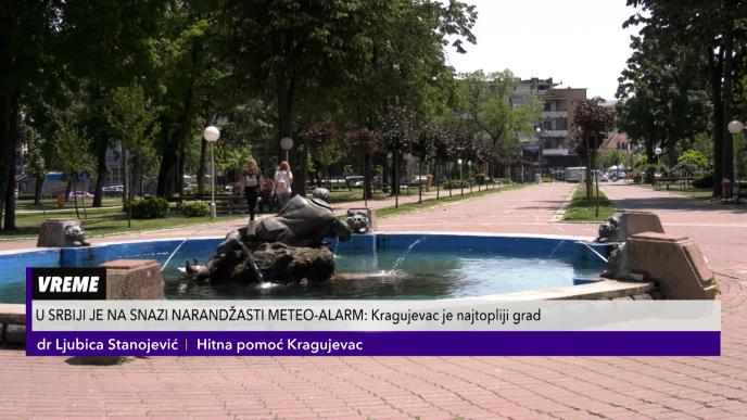 Prema prognozi, Kragujevac je danas najtopliji grad, te su građani potražili spas na lokalnim kupalištima, mnogi su osetili zdravstvene tegobe i dehidrataciju, a ekipa Hitne pomoći je imala povećan broj poziva na javnim mestima zbog visokih temperatura.