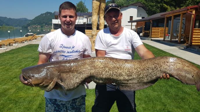Som dugačak 167 centimetara i težak oko 40 kilograma upecan je danas na Zvorničkom jezeru, u mestu Amajić.