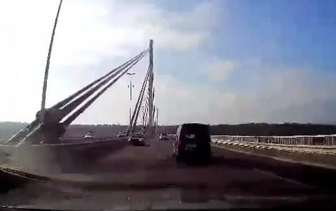 Vozači koji su se danas zatekli na Mostu slobode ostali su u šoku kada su videli da se levom trakom u kontra smeru niz most spušta crveni automobil "golf dvojka".