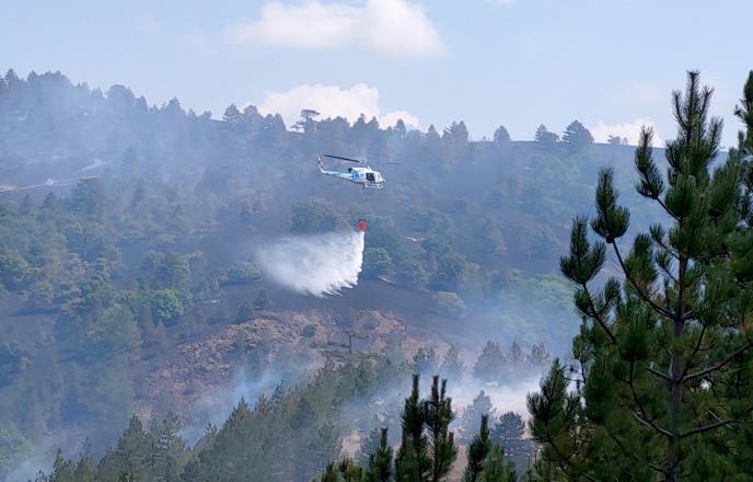 „Situacija jeste teška, nadmorska visina je velika, visoke su temperature, ali borimo se. Vidljivost je dobra. Trudimo se da izbacimo vodu sa bezbedne visine i da na pravi način, onako kako nas Sektor za vanredne situacije navodi, ugasimo taj požar“, rekao je Raičević.